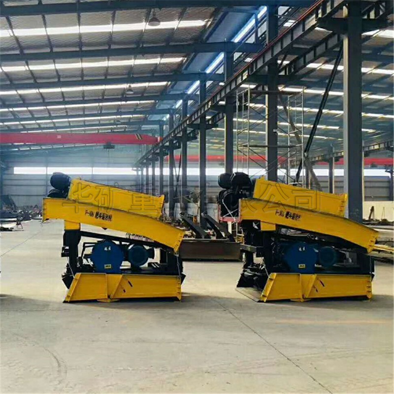 橋式耙斗裝巖機是通過絞車的兩個滾筒分別牽引主繩,尾繩使耙斗做往復(fù)運動把巖石扒進料槽,至卸料槽的卸料口卸入礦車或箕斗內(nèi),從而實現(xiàn)裝巖作業(yè)。